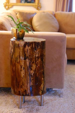 Со чеканот и длетото извадете ја кората. Може и да го прескокнете овој чекор, но со тек на време дрвото ќе се суши се повеќе, па ќе почнат да паѓаат парчиња од кората. Со тоа вашата масичка веќе нема да биде толку убава.