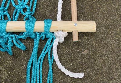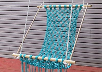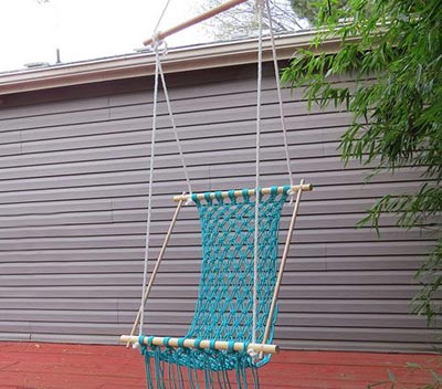 Со малку материјал, и потребната умешност и трпение за врзувањето на јазли може и самите да направите убава лежалка за вашиот двор. За изработка на прикажаната лежалка е употребена „макраме“ техника које е стара со векови и која се употребувала за изработка на мебел, држачи за саксии и други предмети.