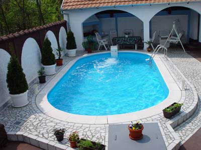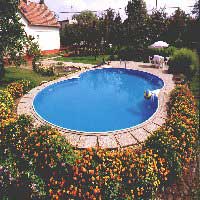 Сепак, најелегантни се целосно вкопаните базени. Специфичноста на вградувањето на овие базени се состои во подготвителните градежни работи со кои се добиваат армирани потпорни ѕидови долж рамните делови на базенот. Впрочем постапката е слична како и при вградување на кружните базнени бидејќи на овалните делови и овие базени имаат самоносивост па така доволно е да се засипа просторот помеѓу работната јама и челичната оплата со сув посен бетон. Димензиите на овланите базени се движат од 4,90 x 3,00 m, па се до 11,00 x 5,50 m. Малку веројатно е дека во овој опсег нема да се пронајде соодветна големина за секој вкус.