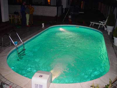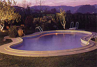 Доколку сепак инвеститорот се одлучи за поелегантната, вградена верзија, ќе треба да се изведат и едноставни и не многу скапи градежни активности. Имено, после ископувањето на јамата, која треба да е 20cm поширока од обемот на базенот, и бетонирањето на армирано-бетонската подлога се поставува конструкцијата на базенот и се полни со вода. Потоа просторот помеѓу откопот и челичната оплата се пополнува со сув посен бетон за да во горната зона со висина 10 cm биде избетониран армирано-бетонски серклаж. Големината на кружните базени се движи помеѓу 4 и 10 m во пречник.
