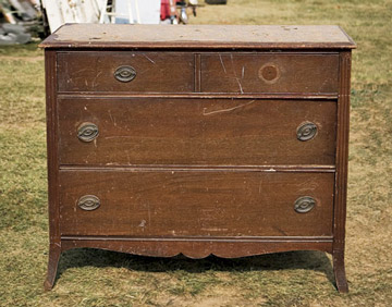 Старото парче мебел прво треба да се подготви за работа. Тоа подразбира брусење на стариот лак и боја, сè до природната боја на дрвото. Тоа може да се направи си рачна брусилка, а притоа внимавајте симнувањето на боја да оди рамномерно.