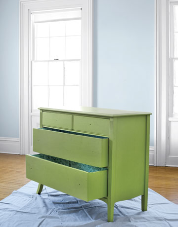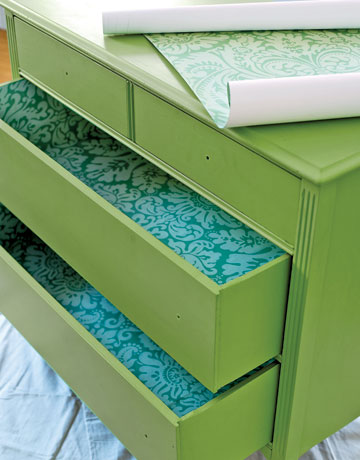 Внатрешноста на комодата исто така украсете ја со самолеплива хартија.