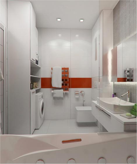 Во ентериерот се употребени тропски тонови кои внесуваат топлина и енергија. Во дневната соба има поставено полици по целата висина на ѕидот, а во спалната соба има голем гардеробер со што се добива многу простор за складирање. Можеби ќе ви изгледа како луксуз посебната гардероба на толку мал простор, но ако има простор каде сè може да се организира, тогаш останатиот простор ќе биде секогаш уреден.