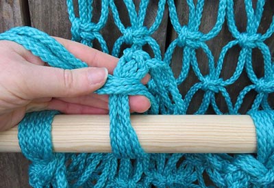 Со малку материјал, и потребната умешност и трпение за врзувањето на јазли може и самите да направите убава лежалка за вашиот двор. За изработка на прикажаната лежалка е употребена „макраме“ техника које е стара со векови и која се употребувала за изработка на мебел, држачи за саксии и други предмети.