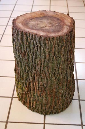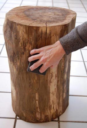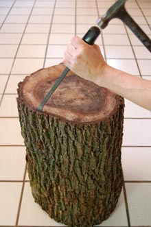 Со чеканот и длетото извадете ја кората. Може и да го прескокнете овој чекор, но со тек на време дрвото ќе се суши се повеќе, па ќе почнат да паѓаат парчиња од кората. Со тоа вашата масичка веќе нема да биде толку убава.