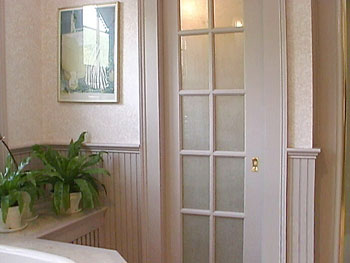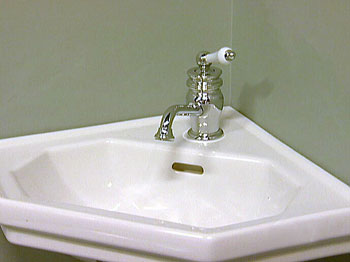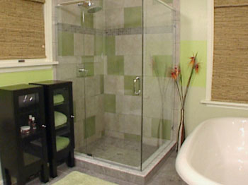 Стаклената врата на туш-кабината создава илузија на поголем простор поради тоа што овозможува да се гледаат обата краја на просторијата.