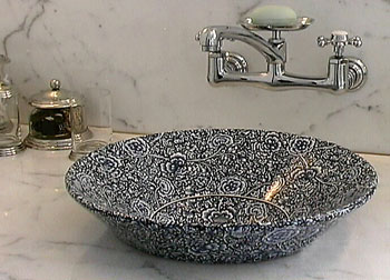 Елементите како овој мијалник претставуваат декоративен фокус во бањата.
