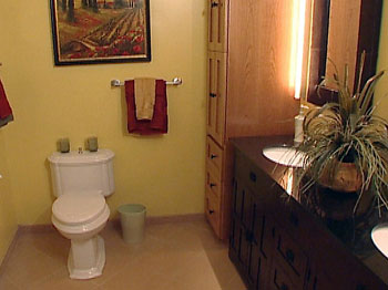 Со употреба на посветли и потопли бои бањата изгледа поголема.