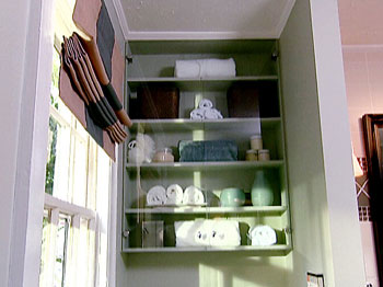Доколку сакате да ставите отворени полици за пешкирите и декоративните предмети, поставете ги што е можно поблиску до таванот за да максимално го искористите просторот.