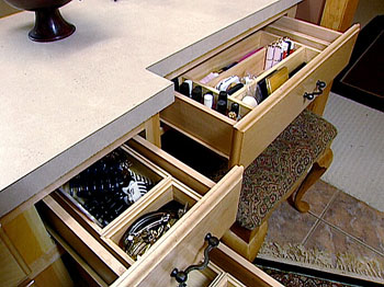 Со присуство на фиоките и ормарчиња во бањата се добива повеќе простор и се намалува нередот.